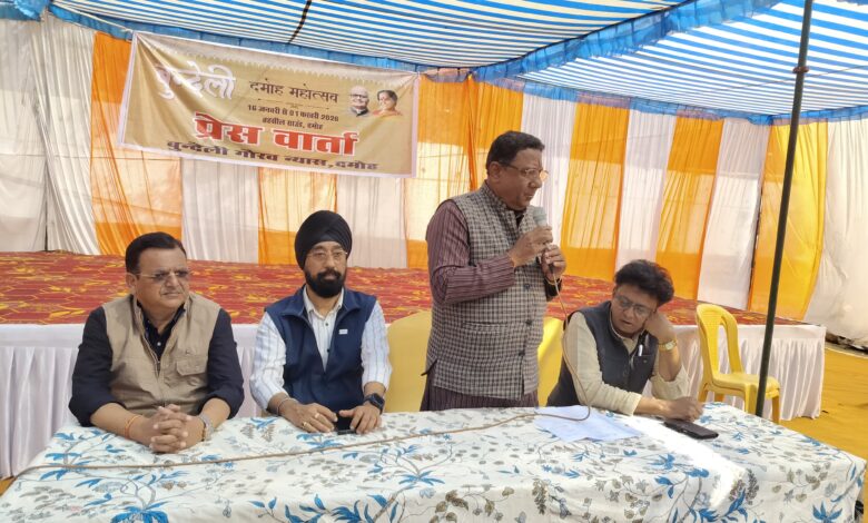 दमोह- बुंदेली संस्कृति, परंपरा एवं लोककला के संरक्षण और संवर्धन को समर्पित बुंदेली गौरव न्यास द्वारा आयोजित बुंदेली मेला महोत्सव 2026 का आयोजन इस वर्ष 16 जनवरी से 1 फरवरी तक किया जाएगा। इस भव्य आयोजन को लेकर मेला ग्राउंड में एक पत्रकार वार्ता आयोजित की गई। पत्रकार वार्ता में मेला के पदाधिकारी विवेक शेंडे, सिद्धार्थ मलैया, प्रभात सेठ एवं मोहित संगतानी विशेष रूप से उपस्थित रहे। आयोजकों ने जानकारी देते हुए बताया कि मेले के प्रथम दिवस 16 जनवरी को महिला साइकिल रैली के साथ महोत्सव का शुभारंभ किया जाएगा। यह रैली कलेक्ट्रेट कार्यालय से प्रारंभ होकर शहर के प्रमुख चौराहों से गुजरते हुए तहसील मैदान में समाप्त होगी। आयोजकों ने बताया कि बुंदेली मेला महोत्सव के दौरान प्रतिदिन विभिन्न सांस्कृतिक कार्यक्रम, प्रतियोगिताएं एवं लोककलाओं से जुड़ी गतिविधियां आयोजित की जाएंगी, जिनका उद्देश्य बुंदेली संस्कृति को जन-जन तक पहुँचाना है। महोत्सव के अंतर्गत 20 जनवरी को देश की प्रसिद्ध लोकगायिका मालिनी अवस्थी अपनी प्रस्तुति देंगी। साथ ही लोकप्रिय पॉप सिंगर मनन वीर सिंह भी दर्शकों का मनोरंजन करेंगे। इसके अतिरिक्त मेले में राम की शक्ति पूजा, आम्रपाली एवं बुद्ध नाटिका, नारी गौरव एवं महान पुरुषों पर आधारित प्रस्तुतियां, राष्ट्रीय कवि सम्मेलन “कौन है दमदार”, स्वर श्री, नृत्य श्री एवं वाद्य श्री सहित अनेक आकर्षक कार्यक्रम आयोजित किए जाएंगे। आयोजकों ने नागरिकों से अपील की कि वे अधिक से अधिक संख्या में उपस्थित होकर इस सांस्कृतिक महोत्सव को सफल बनाएं और बुंदेली विरासत के संरक्षण में सहभागी बनें |